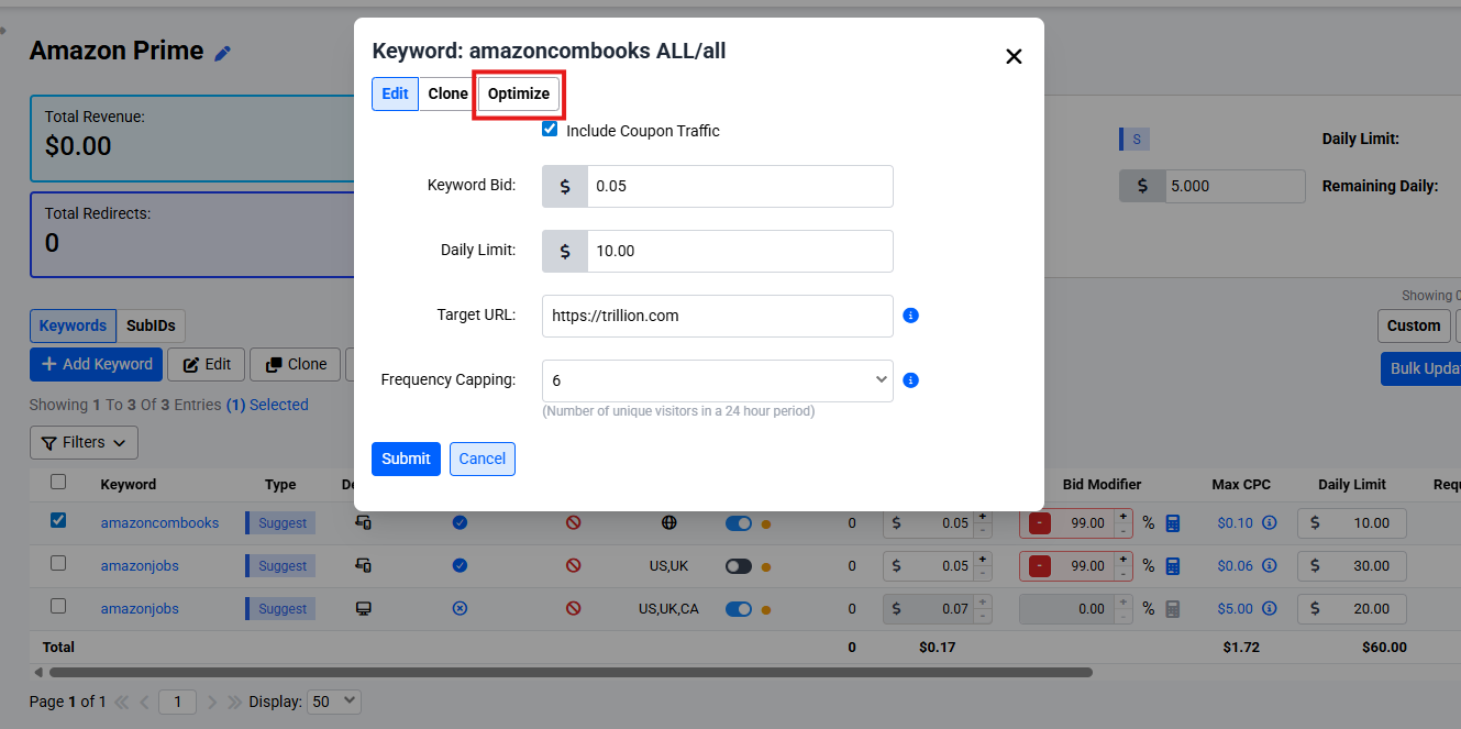 Note: Both formats are available for all keywords. Choose the one you prefer. The system automatically converts between formats as needed. If you enter a dollar amount for a keyword that uses bid modifiers, the system will calculate the equivalent bid modifier percentage based on your campaign bid.