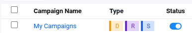 The user can enable or disable their campaigns via this page. Disabling a campaign causes keywords inside the campaign to stop working until the campaign is re-enabled.