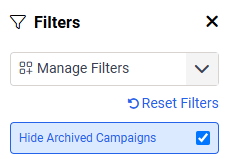 - Note that to unarchive campaigns, the Hide Archived Campaigns filter option should be disabled, otherwise the user cannot see and select the archived campaigns